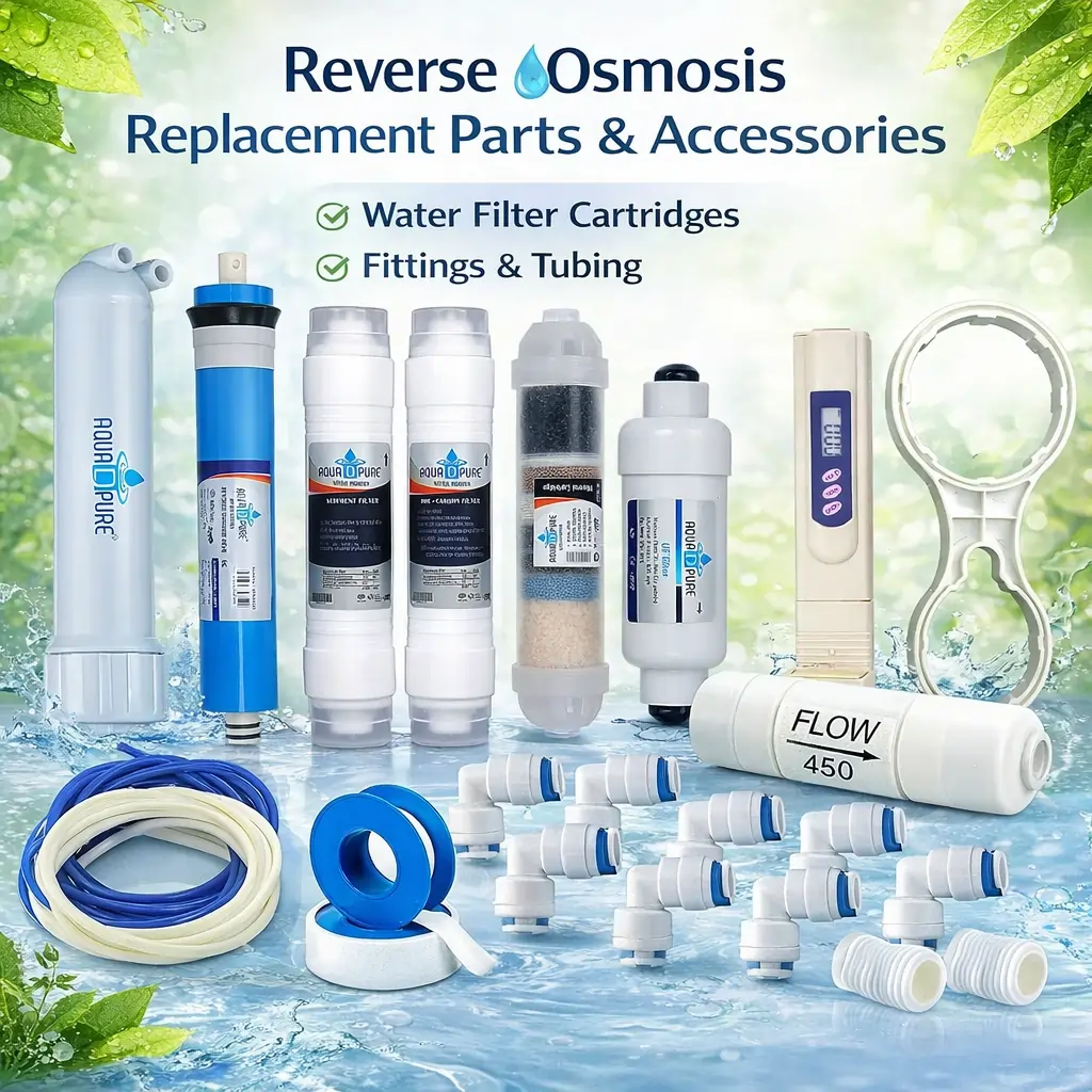 Domestic ro contains sediment, carbon, membrane and pre filter set which are replaceable after 6 to 12 months. Pump, smps, sv, float valve these are electonic parts in water purifier.